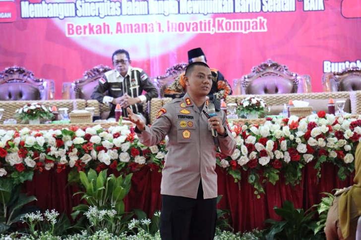 AKBP Yusfandi dalam paparannya menyampaikan terkait kesiapan jajaran Polres Barsel dalam mengamankan pesta demokrasi pemilu serentak tahun 2024 kepada para peserta Rakerda.