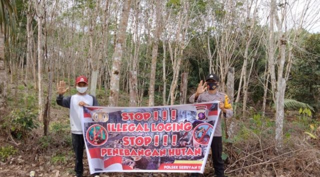 SERUYAN. Polsek Seruyan Tengah Polres Seruyan Polda Kalteng melaksanakan penyebaran maklumat Kapolda Kalteng tentang larangan membakar hutan dan lahan. Kegiatan yang dilakukan Bripka Suwoto di Kec. Seruyan Tengah, Kab. Seruyan Senin (22/02/2021) pagi.